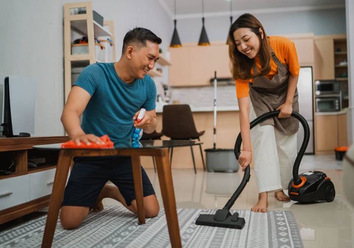 - Cleaning and tidying rooms, kitchens, and bathrooms